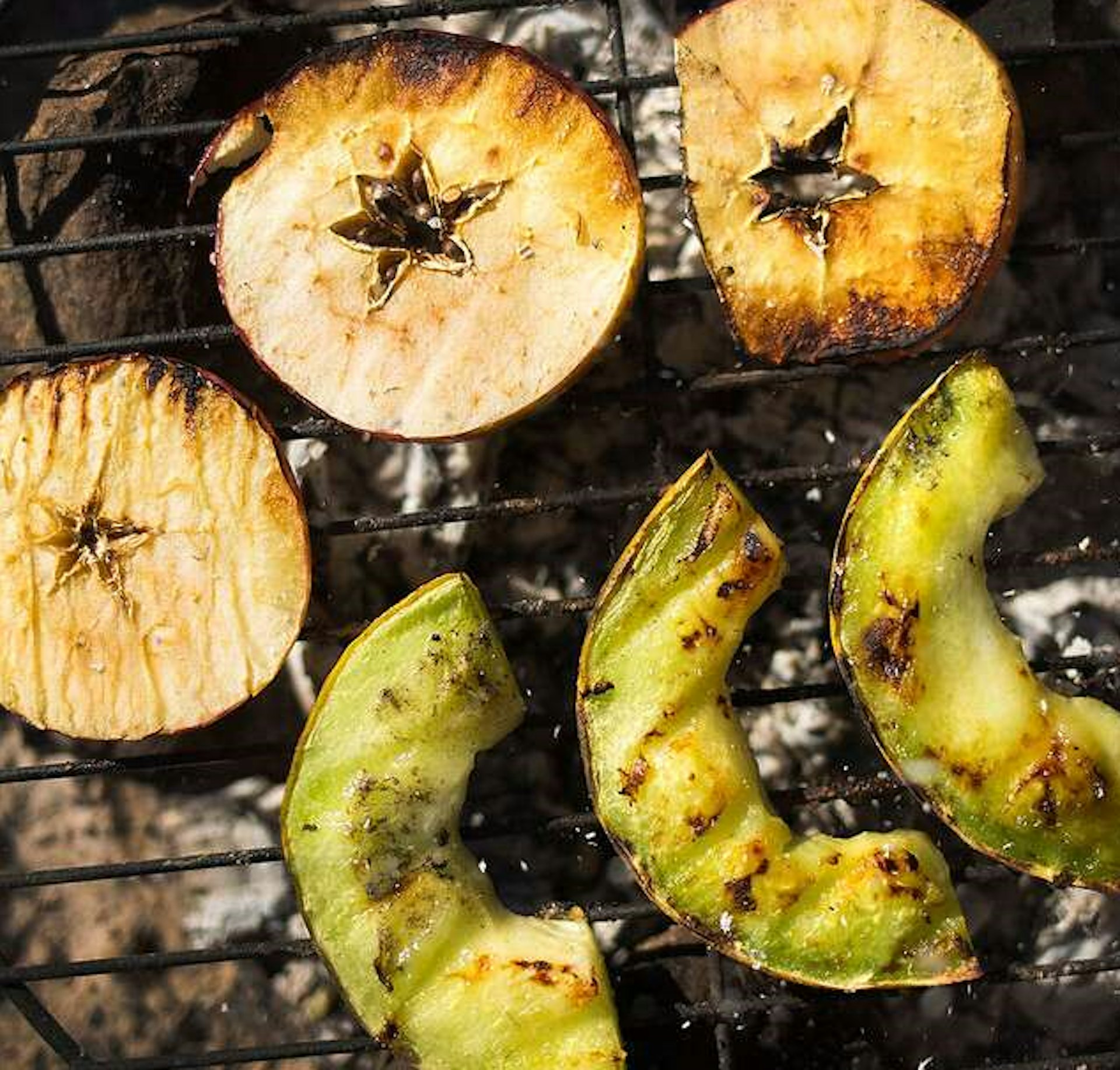 Att grilla frukt är spännande då den brända smaken möter den söta. Rostade nötter passar bra till de flesta frukter. Äpple, melon, ananas, nektarin och banan passar extra bra framför brasan i sommarkvällen.