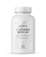 Holistic C-vitamin bioflav är en blandning av vitamin C (askorbinsyra) och bioflavonoider. Bioflavonoiderna kommer från citrusfrukter och har liknande funktion i kroppen som vitamin C. Bioflavonoider stödjer kroppens förmåga att ta upp vitamin C. De vanligaste bioflavonoiderna är hersperidin, rutin och quercetin. Förutom att förbättra kroppens förmåga att ta upp C-vitamin så har de även egna positiva effekter, tex att förbättra cirkulationen och immunsystemet.