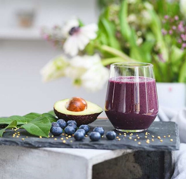 Mixa allt till en slät konsistens. Toppa med bipollen, drick direkt!