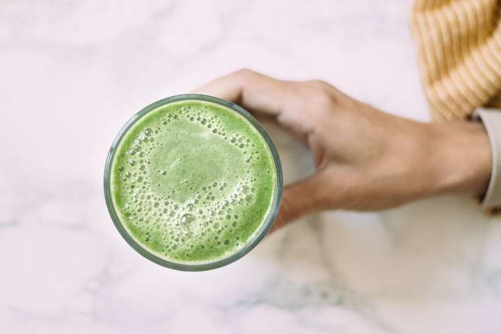 Börja med att skölja och skala äpplena. Skär bort kärnhusen och skär äpplena i bitar som du lägger i blendern. Skölj och skala citronen och lägg den sedan i blendern. Dela, ta bort kärnan och gröp ur avokadon. Skala och grovhacka ingefäran. Mixa sedan alla ingredienserna i blendern. Häll upp och servera smoothien.