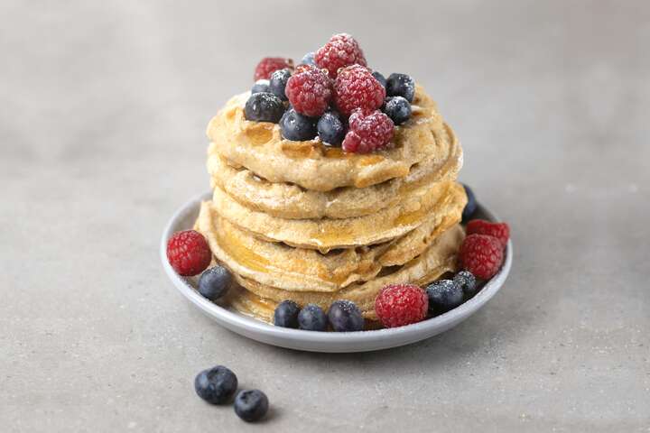 Sikta ned mjölen, bakpulver, vaniljpulver och fiberhusk i en skål. Tillsätt honung och salt och rör om med ballongvisp. Vispa ner havredryck, lite i taget, tills smeten är tjock, men vispbar. Hetta upp våffeljärnet. Använd kokosolja och en pensel när du gräddar. Sleva upp cirka 0,5 dl till varje våffla, en sats blir då ungefär åtta våfflor. Pensla på mer kokosolja mellan varje våffla, annars fastnar de lätt i järnet.