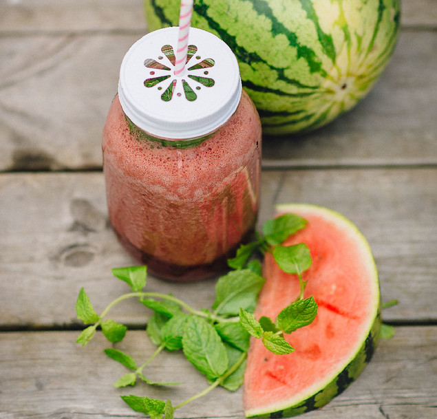 Mixa samtliga ingrediens till en len och krämig smoothie. Servera med mycket färsk mynta. Fräscht och enkelt!