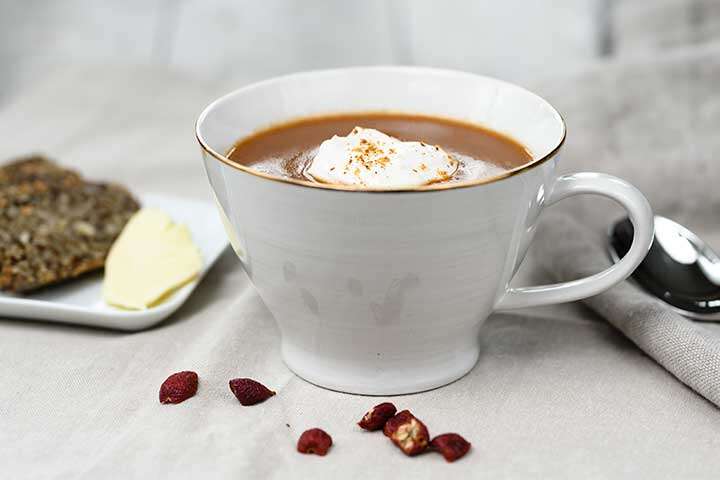 Blanda strandnypon och potatismjöl. Vispa ned blandningen i en kastrull med kallt vatten. Koka upp nyponsoppan under omrörning och låt sjuda några minuter. Smaksätt, söta (vid behov) och toppa soppan med havrefraiche och hackade nötter.