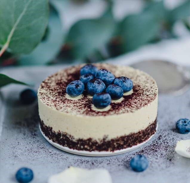 Mixa till slät konsistens. Häll eller bred över kakbotten. Ställ in i frysen i ca 1 timme. Dekorera som du önskar, vi pudrade på blåbärspulver och toppade med färska bär./Malin