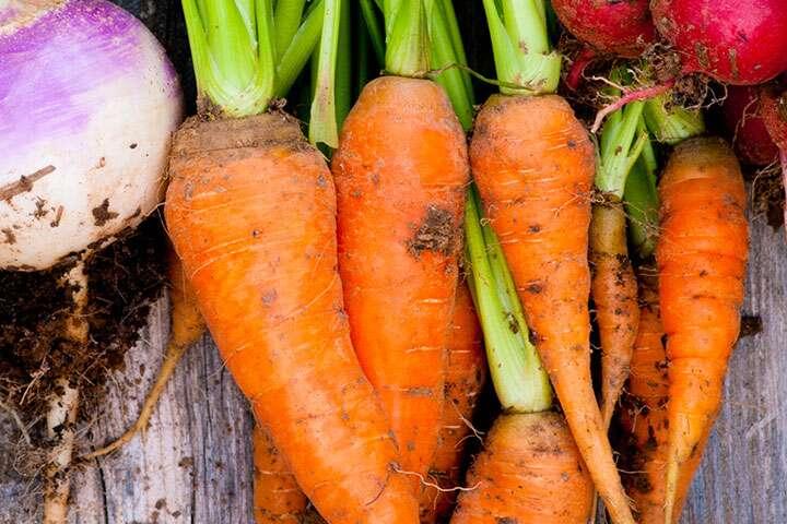 Morötter – är fyllda av betakaroten, som kroppen konverterar till vitamin A. Betakaroten kan minska inflammation från solbränna. Morötter och andra grönsaker med karotenoider hjälper till att hålla huden spänstig. Forskning visar också att karotenoider verkar göra huden mindre solkänslig samtidigt som den minskar det hudåldrande som orsakas av solen.