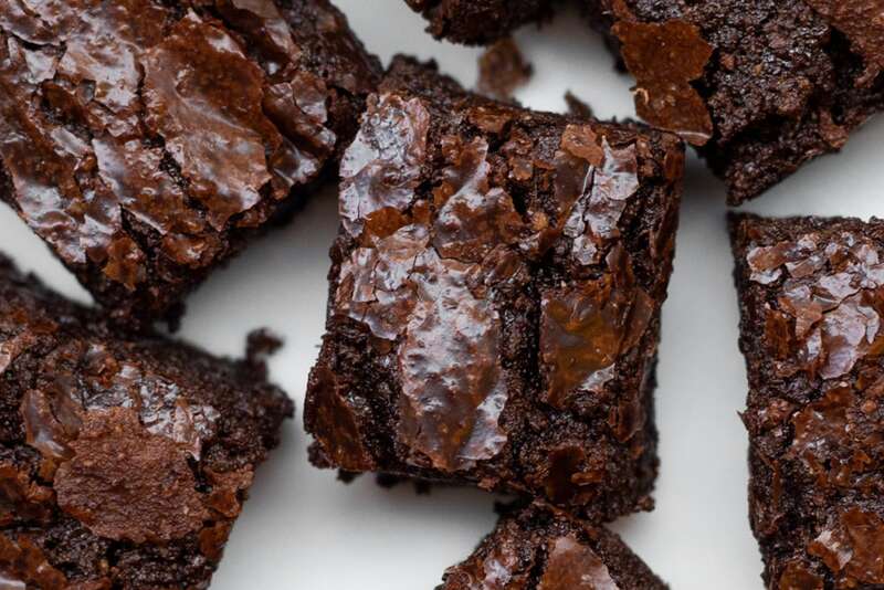 Justera ugnsstället i mittenläget och förvärm ugnen till 160 grader. Klä en 20 cm fyrkantig form med bakplåtspapper. Smält chokladen och kokosoljan i en kastrull på låg värme. Låt svalna. Blanda kokossocker och vatten i en separat kastrull tills sockret är helt upplöst. OBS! Du vill inte att blandningen ska börja koka så att vattnet förångas eller att sockret börjar karamelliseras. Häll sedan blandningen i den smälta chokladen och rör om. Tillsätt havre/mandelmjöl, kakao och salt. Vispa väl tills du får en slät, ganska tjock brownie-smet. Häll smeten i den klädda formen och grädda i cirka 30 minuter. Låt den sedan svalna helt vid rumstemperatur innan du kan skära upp rutor/brownies. Sedan är de redo att serveras. Förvaring: Håller sig i en stängd burk i rumstemperatur i 3 – 4 dagar.